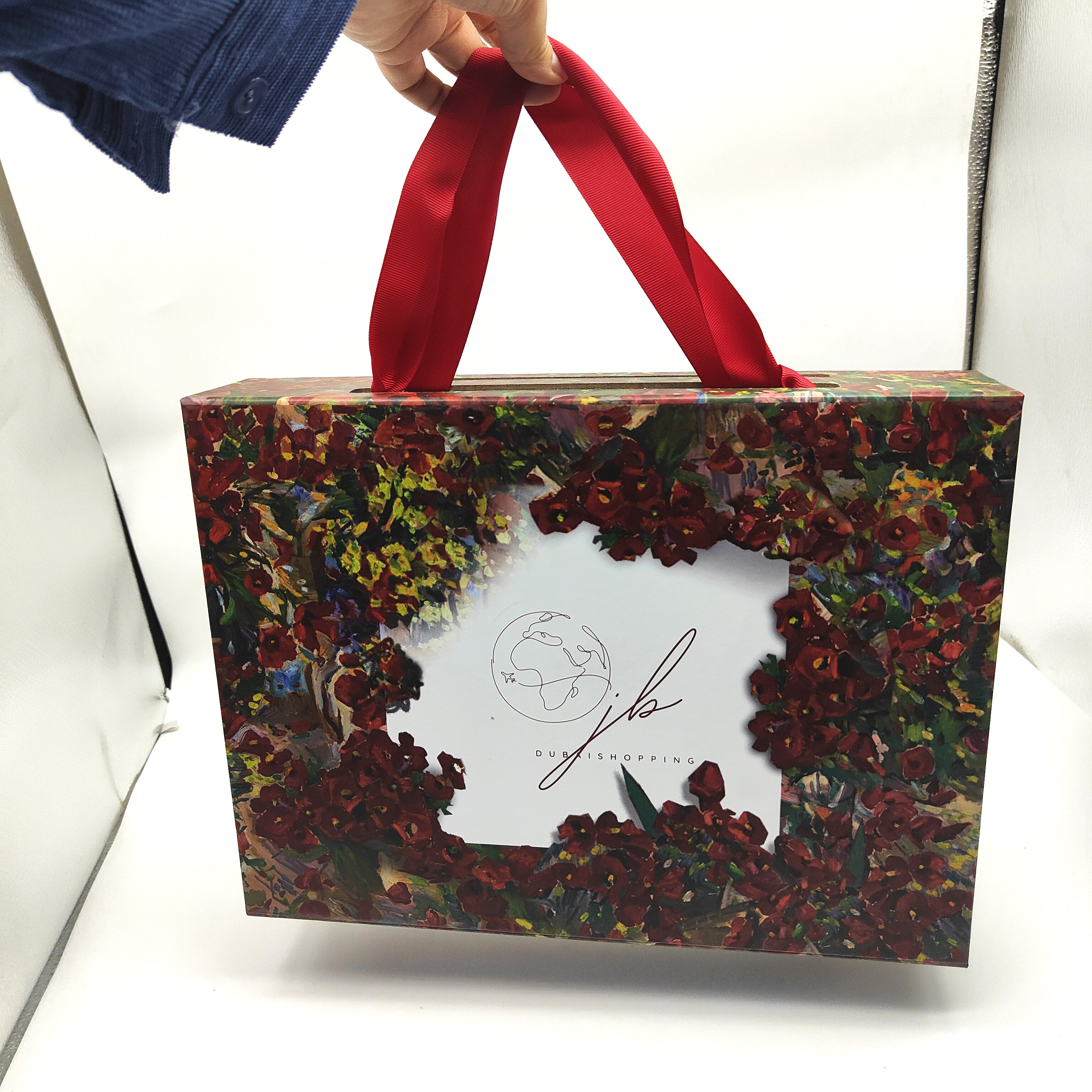 Ribbon Handle Magnetic Gift Boxes With Magnetic Lid For Packaging Rigid Folding Paper Gift Box