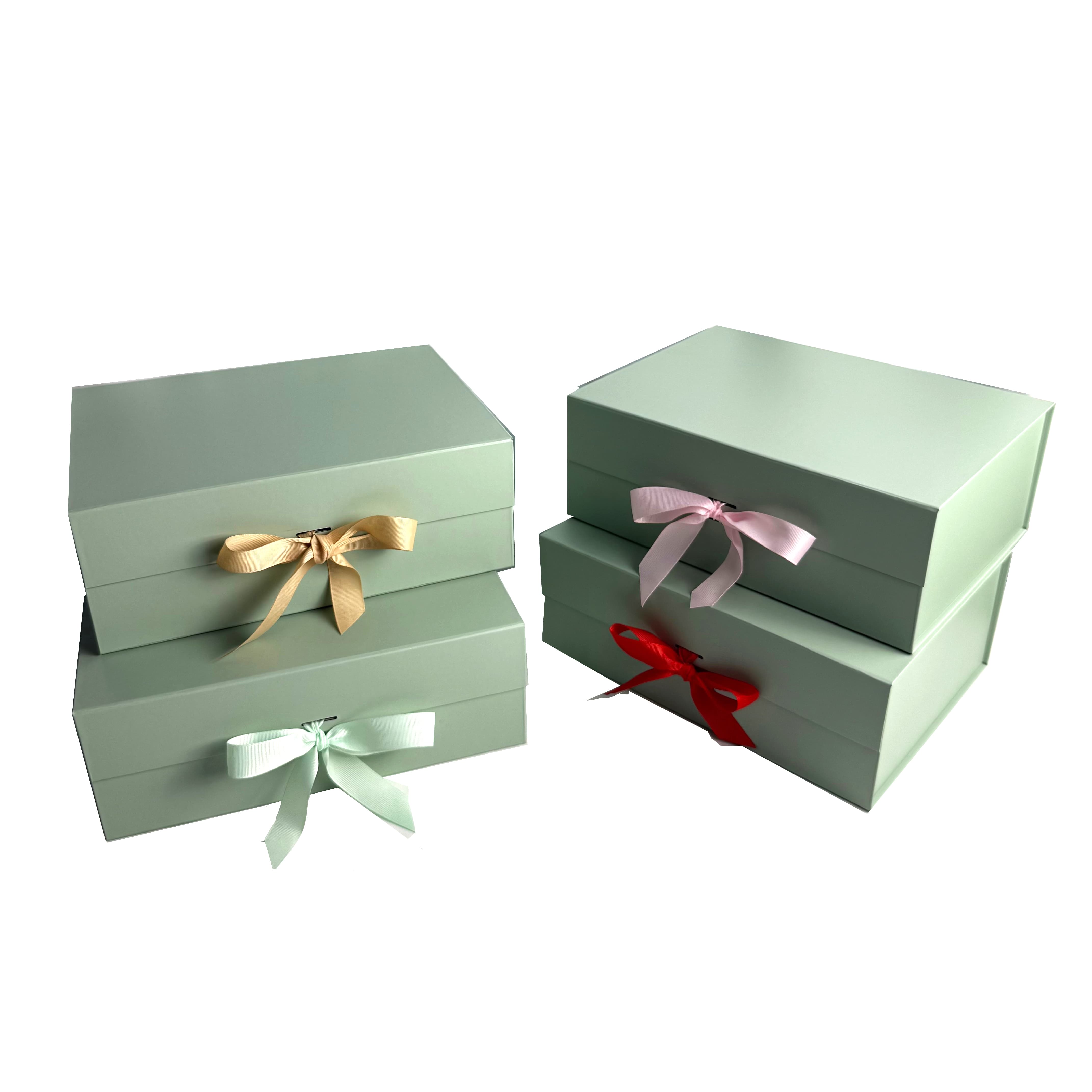 Light Green Magnetic Folding Paper Rigid Box For Christmas Gift Packaging With Ribbon |AOPA BOX