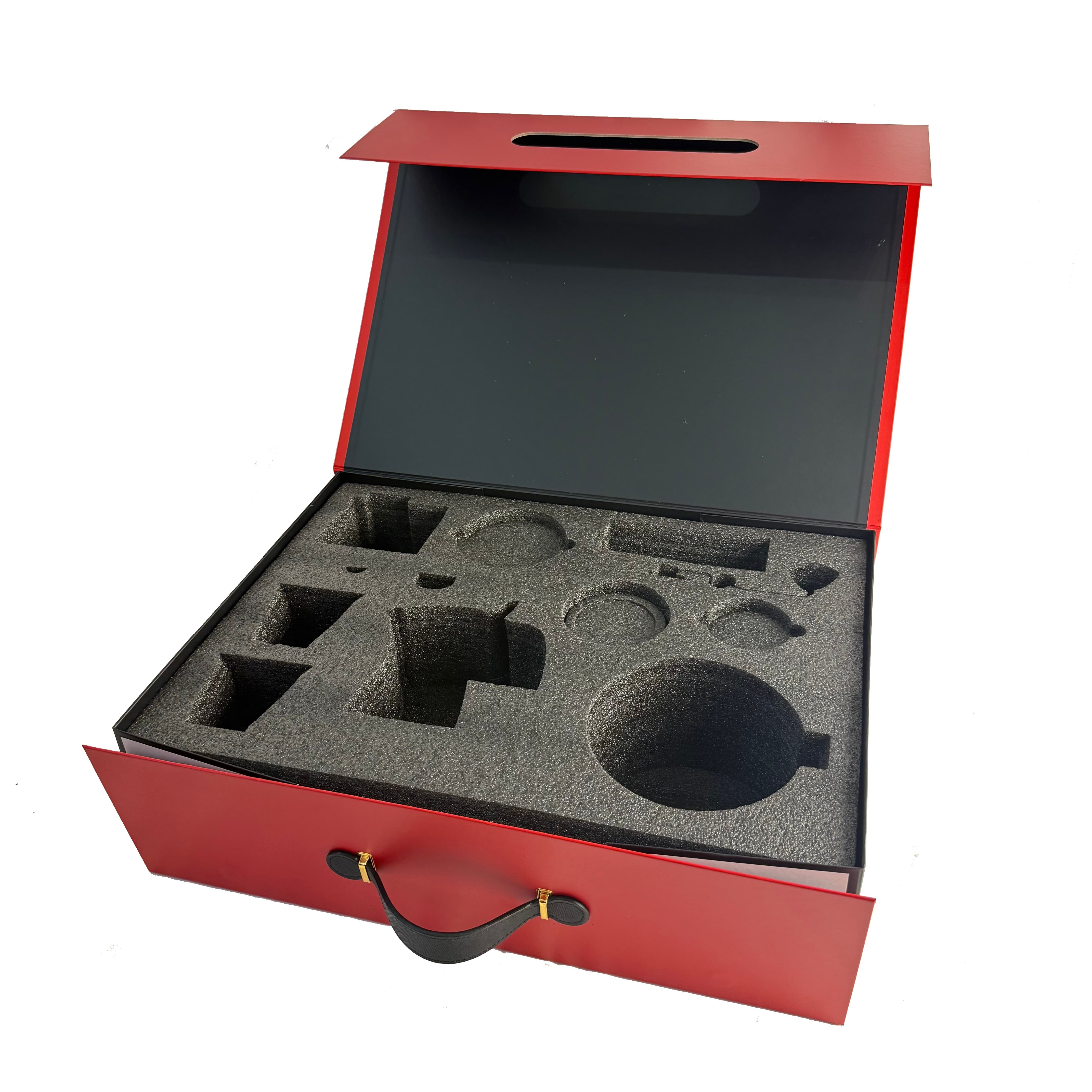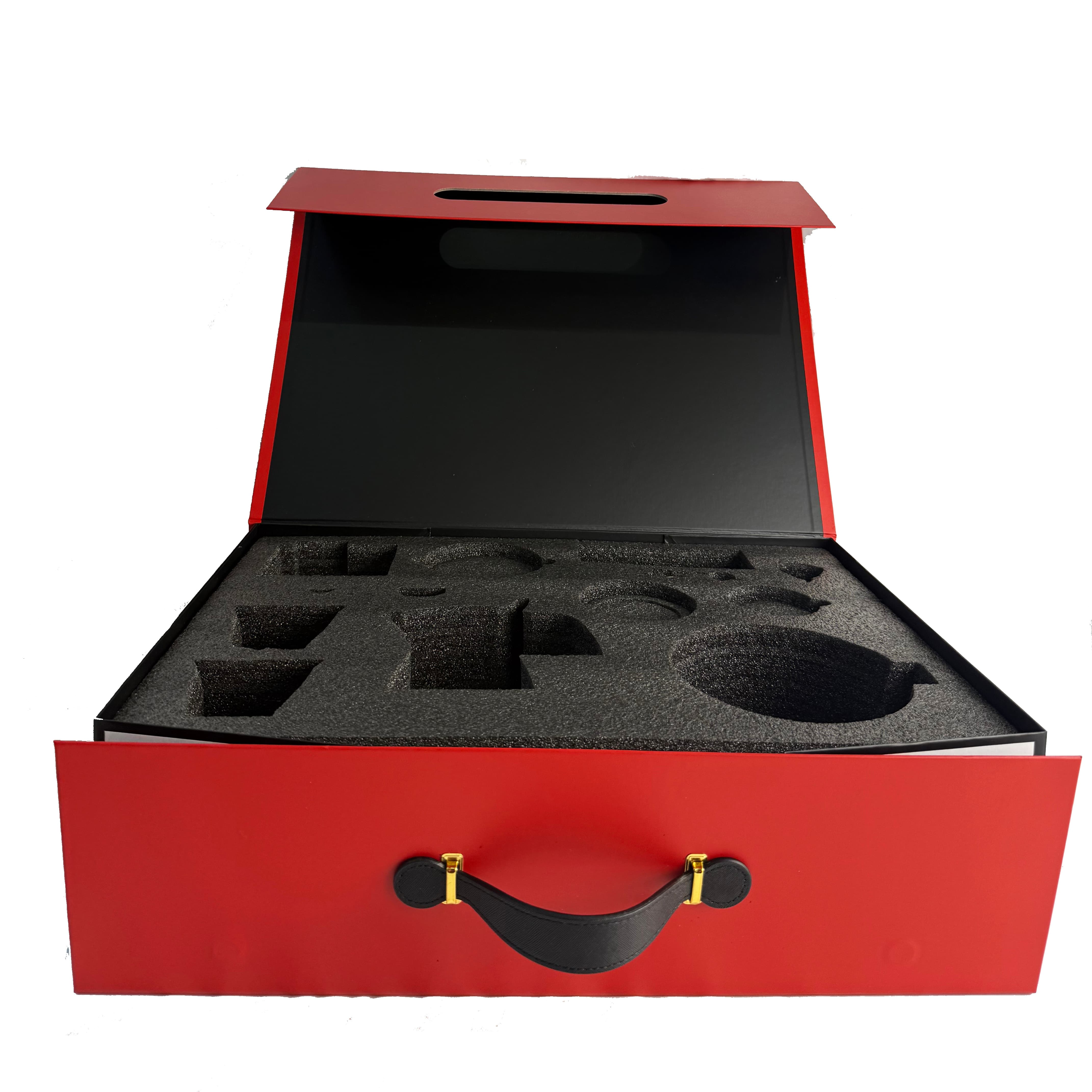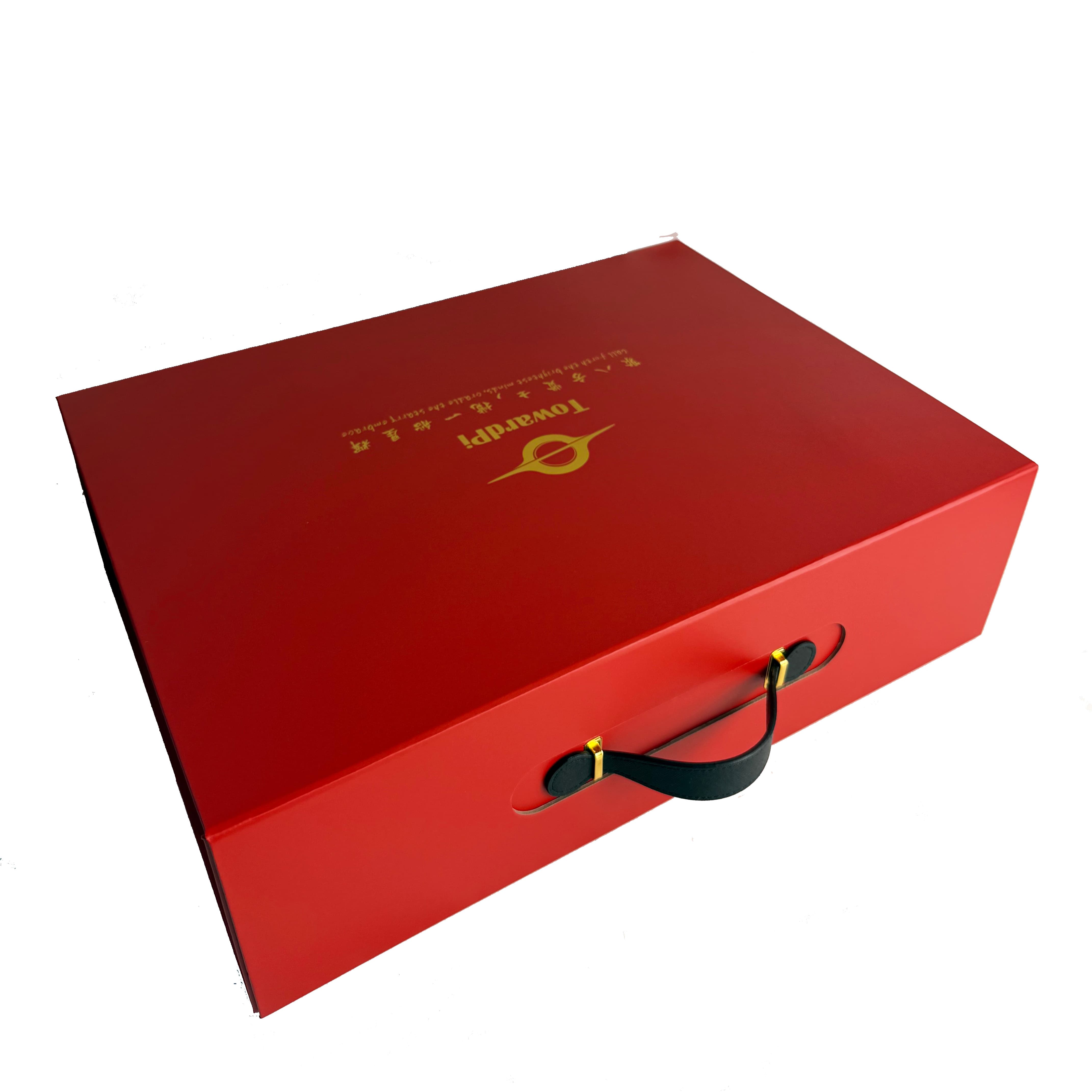 Luxury Magnetic Foldable Flip Paper Box with Custom Logo, PU Handle & Sponge Insert (Large Size)