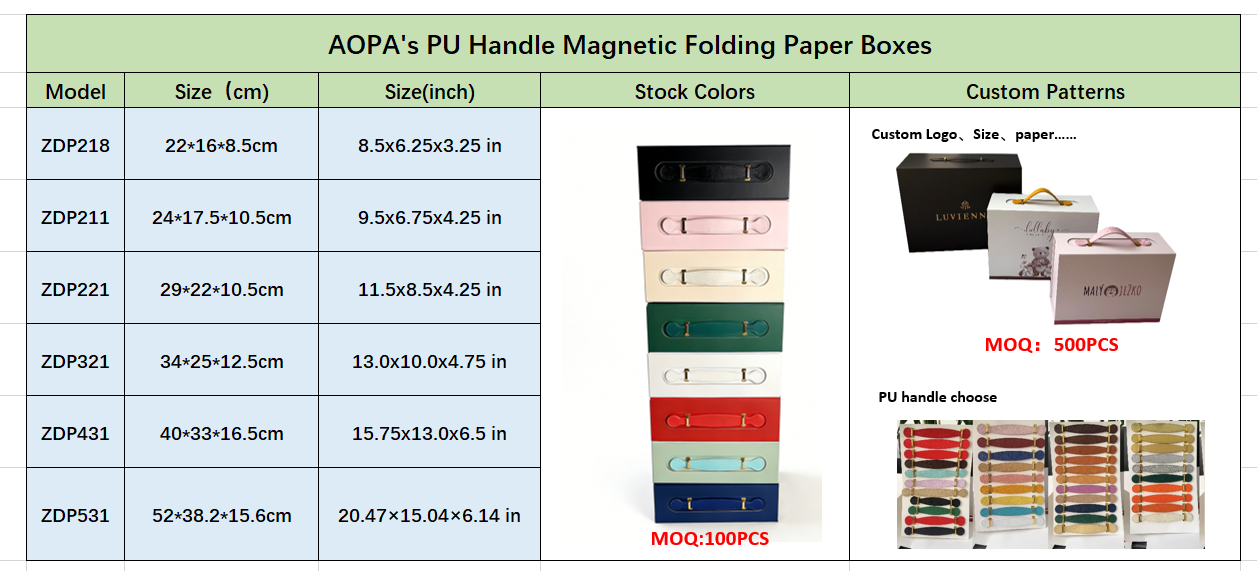 Custom Magnetic Folding Boxes Gift Packaging with PU Handle Hot Stamping|HUZHOU AOPA