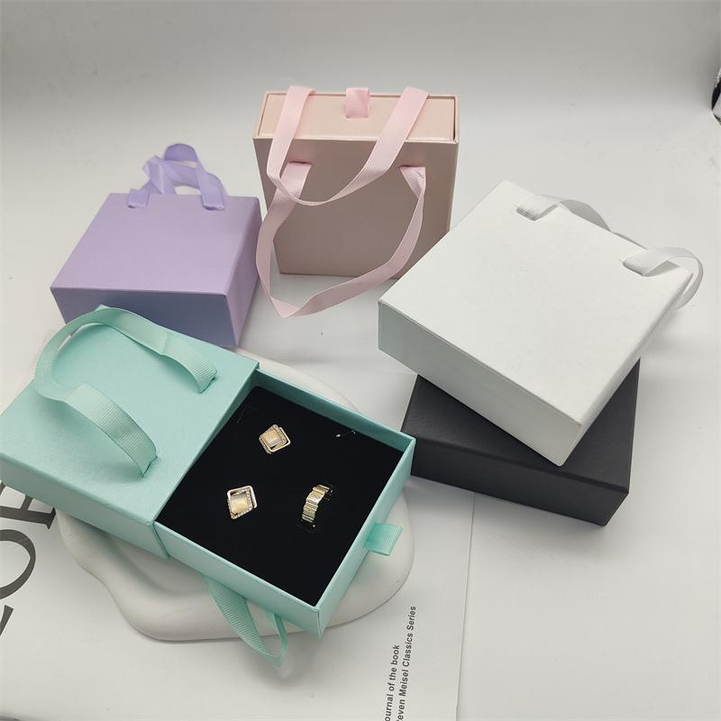 Colorful Cardboard Paper Drawer Box With Ribbon For Earrings