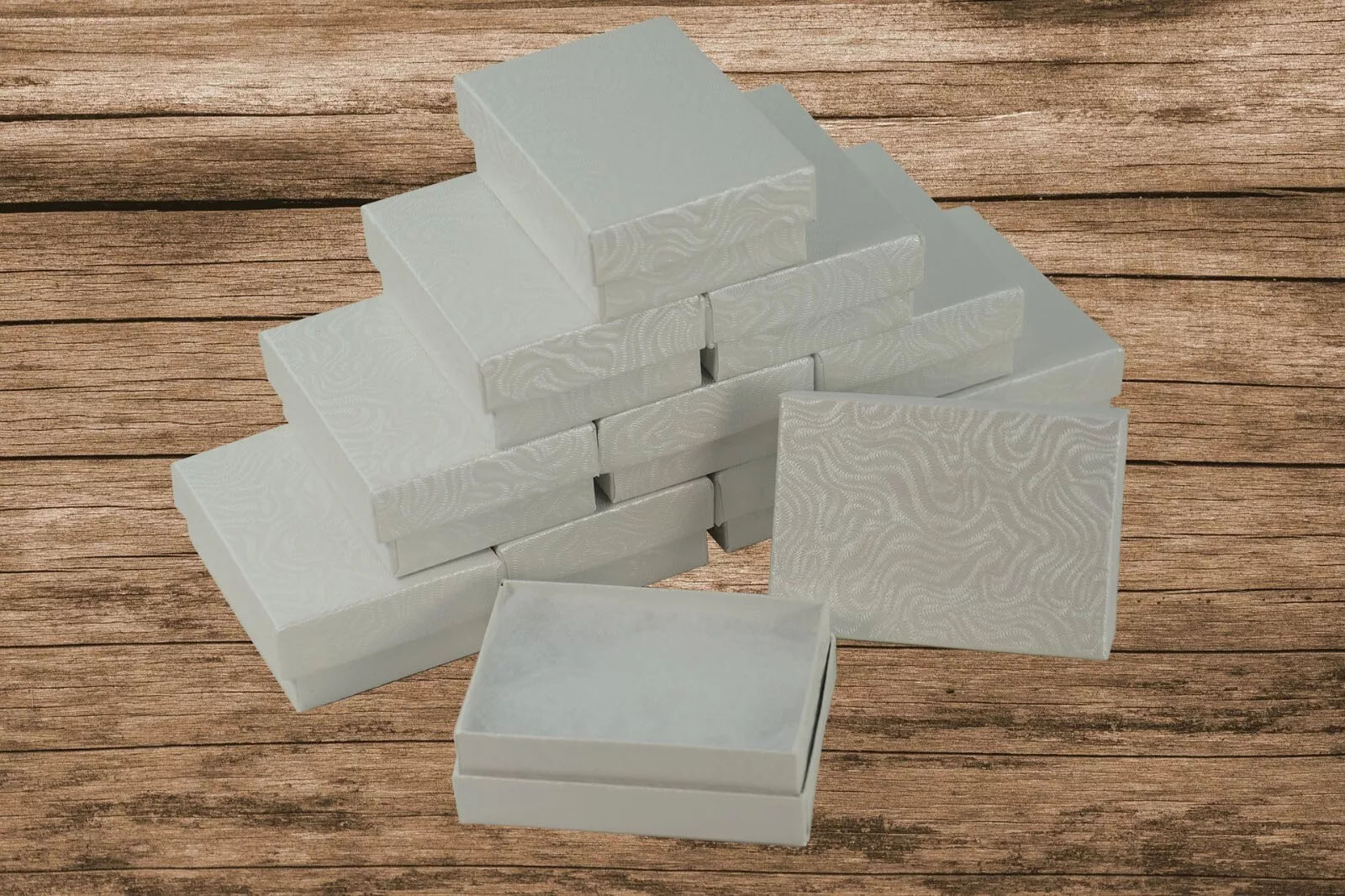 #32 White Swirl Lid And Base Paper Jewelry Packaing Box With Cotton